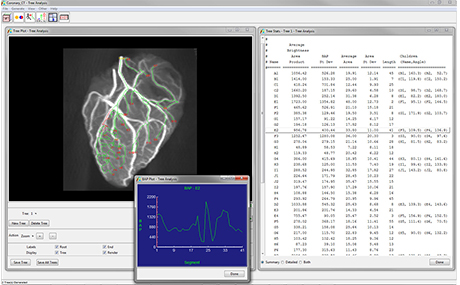 ライン強度・距離の計測、領域とボリュームの設定と統計解析、Point counting volume estimation、Cell counting and statistical analysis、Vessel networking generation and statistical examination
