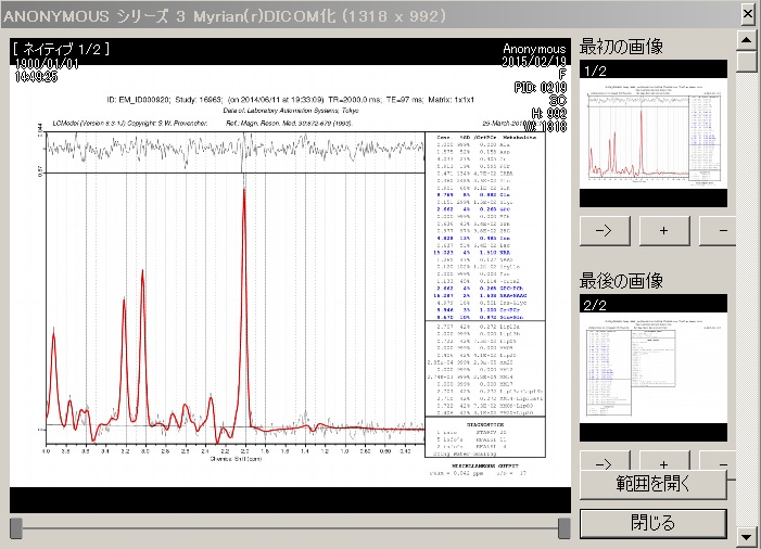※LCModel解析結果をDICOM化して、PACSなどに送信するには付属のオプションソフトウェアをご利用ください。